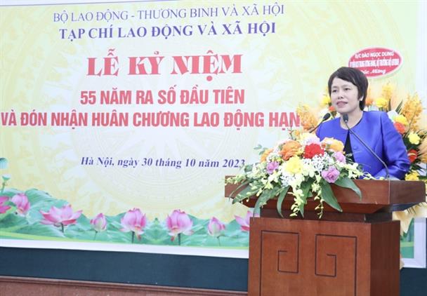 Ngày 30/10, tại Hà Nội, Tạp chí Lao động và Xã hội đã trang trọng tổ chức Lễ kỷ niệm 55 năm xuất bản số đầu tiên (tháng 10/1968 - 10/2023) và đón nhận Huân chương Lao động hạng Nhì lần thứ hai. Tham dự buổi Lễ có các đồng chí Thứ trưởng Bộ LĐTBXH: Nguyễn Thị Hà, Lê Văn Thanh; nguyên Bộ trưởng Nguyễn Thị Hằng; đồng chí Bùi Ngọc Thanh - nguyên Chủ nhiệm Văn phòng Quốc hội; đồng chí Bùi Sĩ Lợi, nguyên Phó Chủ nhiệm Ủy ban xã hội của Quốc hội; lãnh đạo các Cục, Vụ, Viện của Bộ; lãnh đạo các Sở LĐTBXH; đại diện các cơ quan, đơn vị đối tác của Tạp chí; cùng các thế hệ lãnh đạo và cán bộ, phóng viên, biên tập viên Tạp chí các thời kỳ.