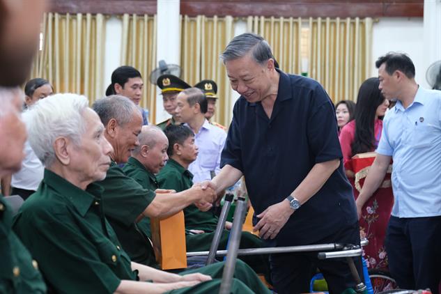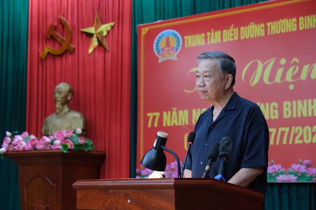 Chiều 24/7, nhân kỉ niệm 77 năm Ngày Thương binh - Liệt sĩ (27/7/1947-27/7/2024), Chủ tịch nước Tô Lâm đã tới thăm, tặng quà thương binh, bệnh binh đang được điều trị, chăm sóc tại Trung tâm điều dưỡng thương binh Thuận Thành (Bắc Ninh), đây là nơi nuôi dưỡng, điều trị cho thương - bệnh binh đông và thương tật nặng nhất cả nước.Tham gia Đoàn công tác có Chủ nhiệm Văn phòng Chủ tịch nước Lê Khánh Hải; Bộ trưởng Bộ LĐTBXH Đào Ngọc Dung; Bộ trưởng Bộ Y tế Đào Hồng Lan; Thứ trưởng Bộ Quốc phòng Vũ Hải Sản; Thứ trưởng Bộ Công an Trần Quốc Tỏ; Phó trưởng ban Thường trực Ban Dân vận Trung ương Phạm Tất Thắng; Bí thư Tỉnh ủy Bắc Ninh Nguyễn Anh Tuấn…; cùng đại diện lãnh đạo một số bộ ban ngành Trung ương và tỉnh Bắc Ninh.
