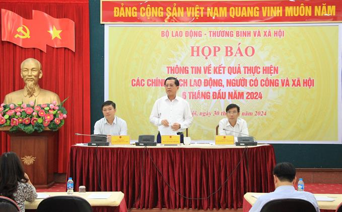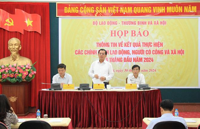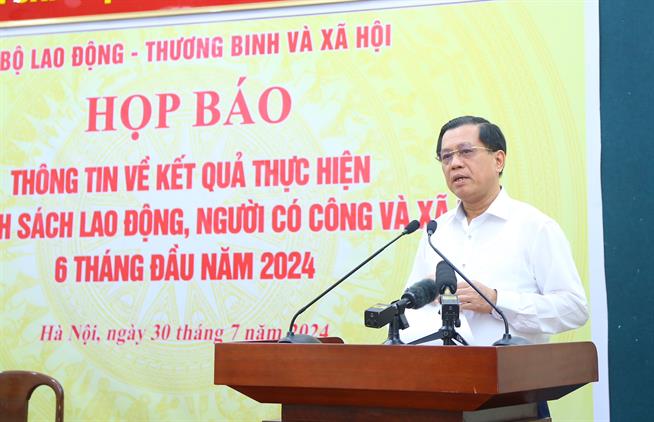 Sáng ngày 30/7, tại Hà Nội, Bộ Lao động – Thương binh và Xã hội (LĐTBXH) tổ chức gặp mặt các cơ quan báo chí, cung cấp thông tin nhanh về kết quả thực hiện các chính sách lao động, người có công và xã hội 6 tháng đầu năm 2024. Tham dự và chủ trì buổi họp báo có Thứ trưởng Bộ LĐTBXH Nguyễn Bá Hoan, đại diện lãnh đạo các đơn vị thuộc Bộ cùng các phóng viên thông tấn báo chí theo dõi Bộ, ngành.