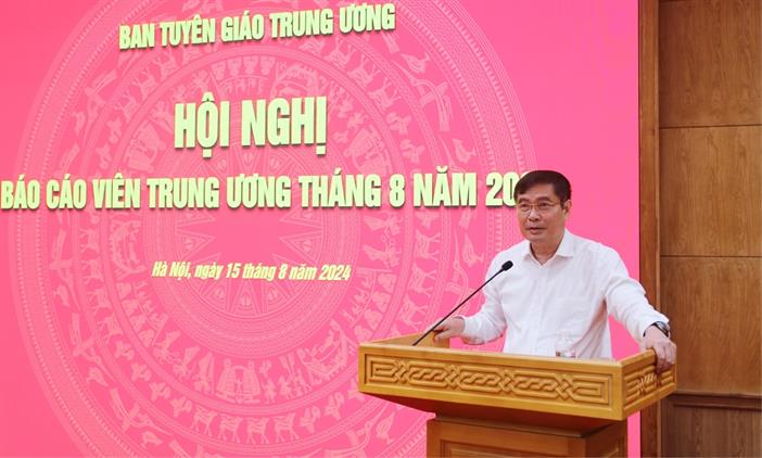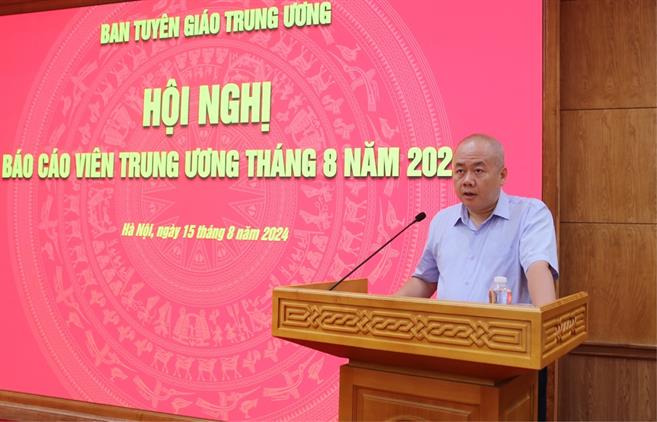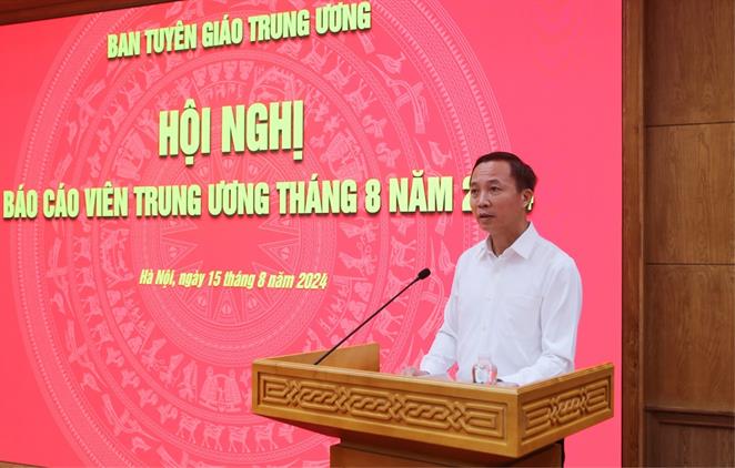Sáng 15/8, dưới sự chủ trì của Phó Trưởng Ban Tuyên giáo Trung ương Phan Xuân Thủy, Hội nghị Báo cáo viên Trung ương tháng 8/2024 đã được tổ chức trực tuyến từ đầu cầu Ban Tuyên giáo Trung ương kết nối đến hơn 2.000 điểm cầu trên cả nước, trong đó có 57 điểm cầu các tỉnh, 647 điểm cầu cấp huyện và 1313 điểm cầu ở cấp xã. Đáng chú ý, Đảng ủy Khối các cơ quan Trung ương mở 267 điểm cầu với gần 9.900 đại biểu tham dự.