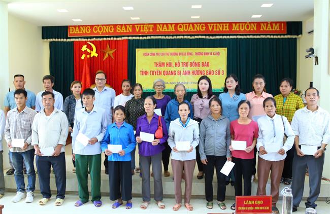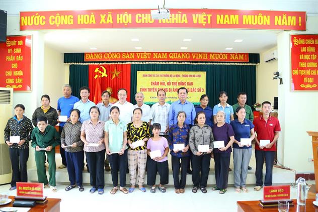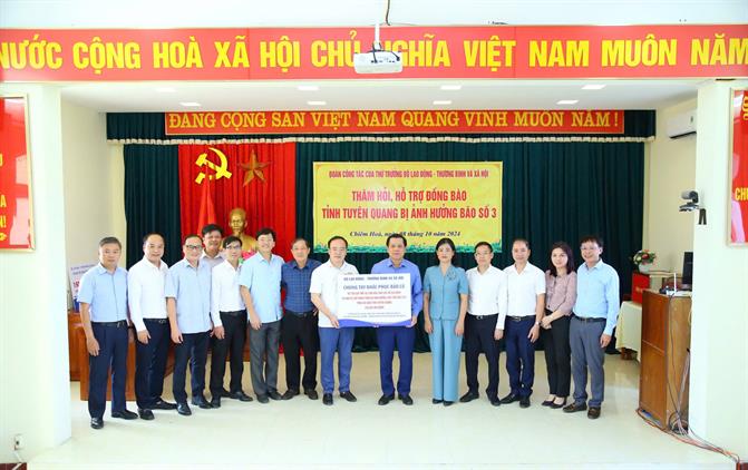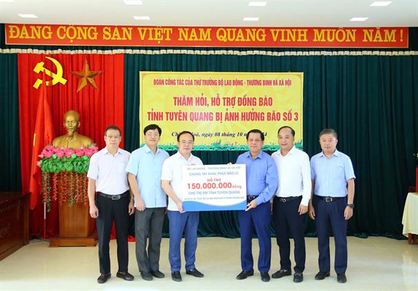 Ngày 8/10, Thứ trưởng Bộ Lao động - Thương binh và Xã hội Nguyễn Bá Hoan cùng đoàn công tác của Bộ đã tới huyện Chiêm Hóa, tỉnh Tuyên Quang để thăm hỏi, trao quà tới người dân và các gia đình chính sách bị ảnh hưởng bởi cơn bão số 3. Tham gia đoàn có đại diện lãnh đạo Văn phòng Bộ, Cục Người có công, Cục Bảo trợ Xã hội, Công đoàn Bộ, Trung tâm Lao động ngoài nước, Quỹ Bảo trợ Trẻ em Việt Nam, báo Dân trí…